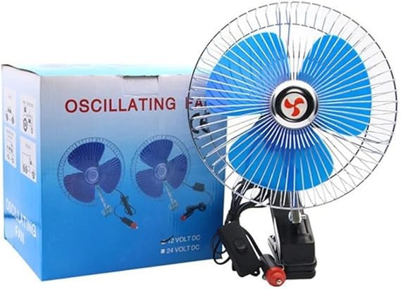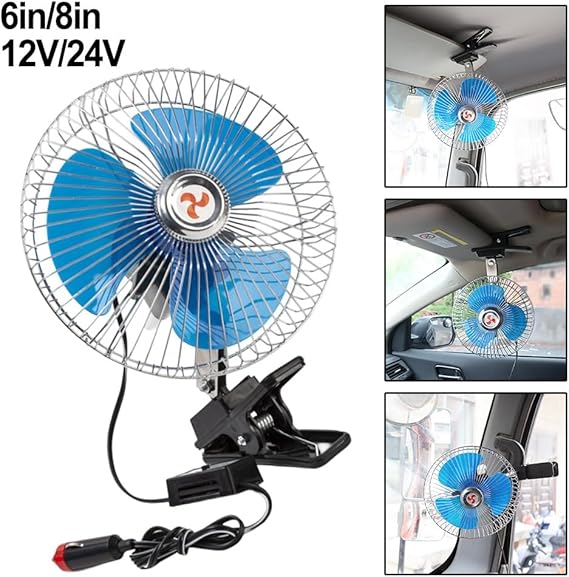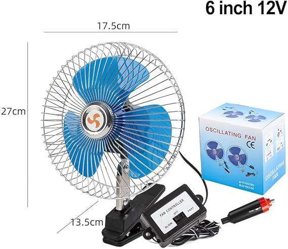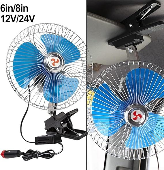for Araç vantilatörü, temel kelepçeli, 12 V/24 V araç fanı, 2 hızlı soğutma, metal rüzgar kapaklı döner araba vantilatörü, kamyonlar, tekneler, SUV’lar, karavan için (6 inç, 12 V)
