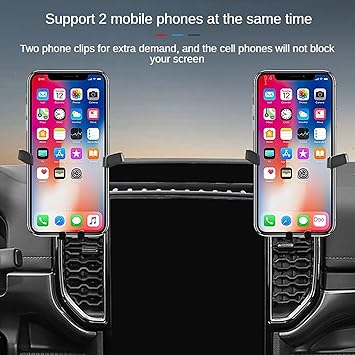 【Benzersiz tasarım】Carplay’i engellemeden navigasyon ekranı için özel temel. İki cep telefonu klipsi ile telefonunuzu ihtiyaçlarınıza göre her iki tarafa da yerleştirebilirsiniz. Telefon tutucu hem sürücü hem de yardımcı sürücü tarafından kullanılabilir. Tek elle kullanım!