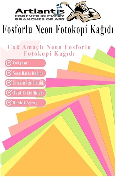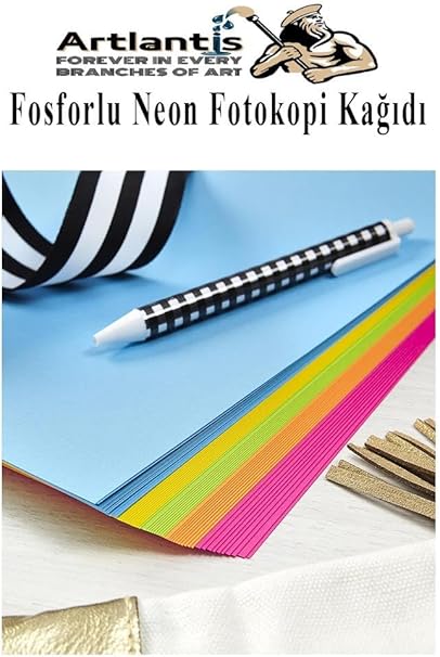 Fosforlu Renkli A5 Fotokopi Kağıdı 50 li 1 Paket 50 Adet Fosforlu 5 Renk Parlak Canlı Renkler Fotokopi Kağıdı