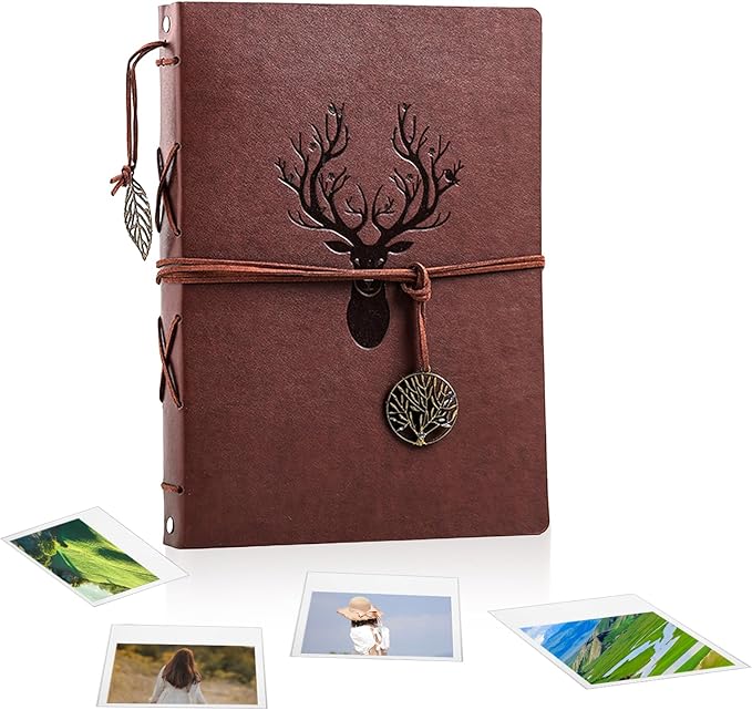 fotoğraf albümü, vintage deri albümü, 27 x 20,5 cm, kişisel tasarım fotoğraf albümü, 60 sayfa koleksiyon defteri, 420 resim için, düğün misafir defteri, arkadaş için hediye (geyik)