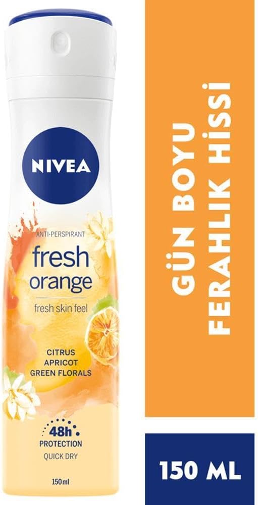 Nivea Fresh Orange Kadın Sprey Deodorant, taptaze portakalın enerji veren kokusuyla sizi canlandırır