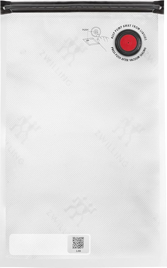 Yer tasarrufu sağlayan vakumlu torba: Sağlam Fresh & SAVE vakumlu torbalarla, gıdalar fermuar sayesinde hava geçirmez şekilde derin dondurucuda ve buzdolabında saklanabilir ve vakumlama sayesinde dondurucuda yanmaya son. Marine yardımcısı dahil tekrar kullanılabilir saklama torbaları Sous-vide-pişirme ve marine için çok uygundur. Teslimat kapsamı: Zwilling vakumlu başlangıç seti, 8 parça, La Mer: 1 x vakum pompası (Ø 4,5 cm, Y 19,5 cm), USB 2.0 Tip A şarj kablosu, Micro-USB, 1 x vakum kutusu cam L (2 L, 22 x 15 x 12 cm), 1 x vakumlu yemek kutusu L düz (1 L, 22 x 15 x 6,5 cm. cm), 2x vakum torbası S (her biri 1,25 l, 23 x 20 cm), 2 x vakum torbası M (her biri 4 L, 35 x 26 cm), 1 x vakum torbası L (8,5 L, 49 x 30 cm), fermuar ve marine etme yardımı dahil, 1022464