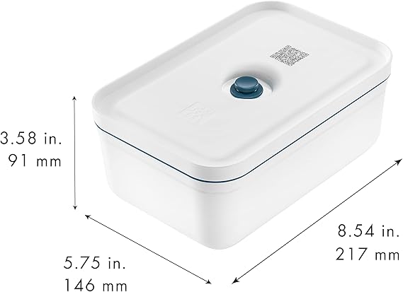 Akıllı yemek borusu: Her düzenleyici kutunun kapağında bir QR kodu vardır: Akıllı ZWILLING uygulaması sayesinde hazırlanan tüm yemeklerin taze durumu akıllı telefon ile izlenebilir. Teslimat kapsamı: 1 x Zwilling vakumlu yemek kutusu, plastik, boyut L (1,6 l, 22 x 15 x 9 cm), beyaz-La Mer, malzeme: BPA içermeyen plastik (kapak ve kap), silikon (valf ve conta), 1009486. Ayrı olarak satılan Zwilling Fresh & Save vakum pompası gereklidir. Teslimat kapsamına dahil değildir.
