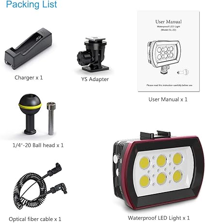 Çeşitli montaj yöntemleri: 1/4 inç vida deliği ile donatılmıştır ve bir top başlığı ve bir soğuk pabuç adaptörü dahil, LED ışığı kameraya, kamera muhafazasına, telefon muhafazasına, su altı aydınlatma sistemine vb. monte edebilirsiniz.