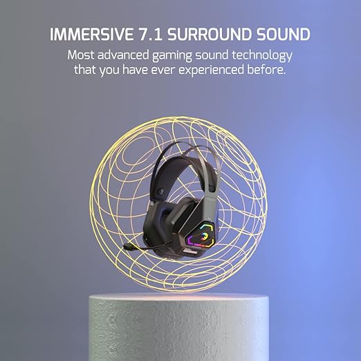 Fujin USB Gaming Headset – 7.1 Virtual Surround Sound, Wired RGB Led Headphones with 50MM Drivers, Comfort Design, 360 Spatial Audio, Noise Cancelling Mic PC, Laptop, Black