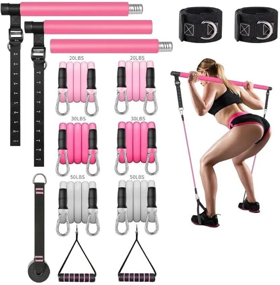 Full Vücut Pilates Bar Seti Egzersiz Çubuğu Ayarlanabilir Evde Onlarcak Farklı Spor Jimnastik Olanağı Kapı Askılı Çantalı
