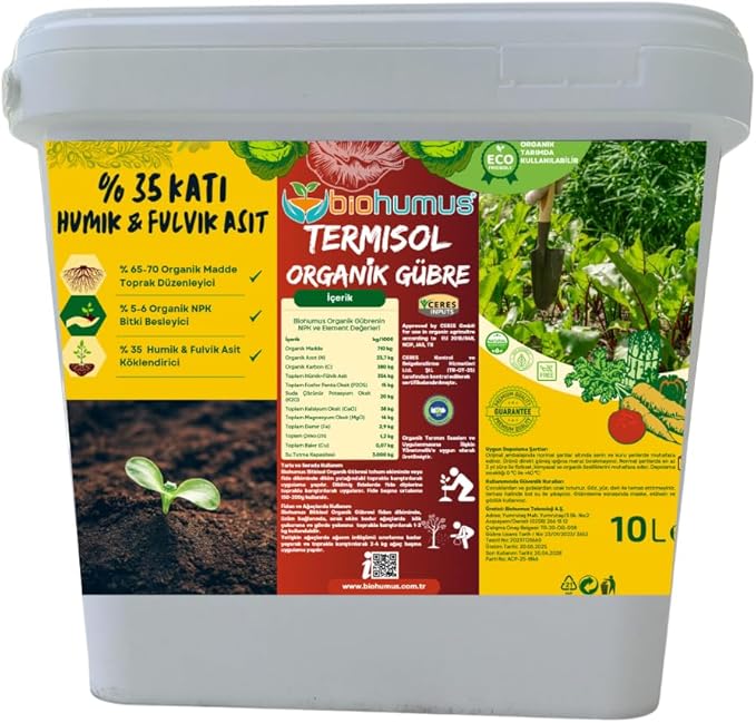 FULVİK ASİT, Biohumus Organik gübre, Organik Sertifikalı, Kök geliştirici, toprak düzenleyici, bitki besleyici, 10 Litre