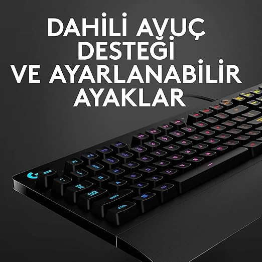 Dahili avuç desteği, rahat bir şekilde oyun oynamaya devam etmeniz için yorulmanızı önlerken iki düzeyli açı ayarı klavyenizin doğru konumlandırılmış hissettirmesini sağlar