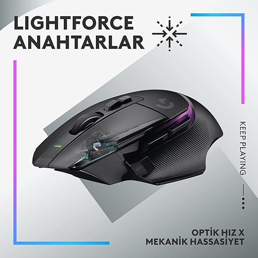 LIGHTFORCE anahtarları: Harika hız ve güvenilirlik için tamamen yeni hibrit optik-mekanik anahtar teknolojisi, net tepki ile hassas çalıştırması, saatlerce performansta oyun oynamak içindir