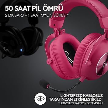 G PRO X 2 LIGHTSPEED Kablosuz Oyuncu Kulaklığı, Çıkarılabilir Boom Mikrofon, 50 mm Grafen Sürücüler, DTS:X Headphone 2.0, 7.1 Surround, Bluetooth/USB/3.5 mm Aux, PC, PS5, PS4, Switch, Pembe