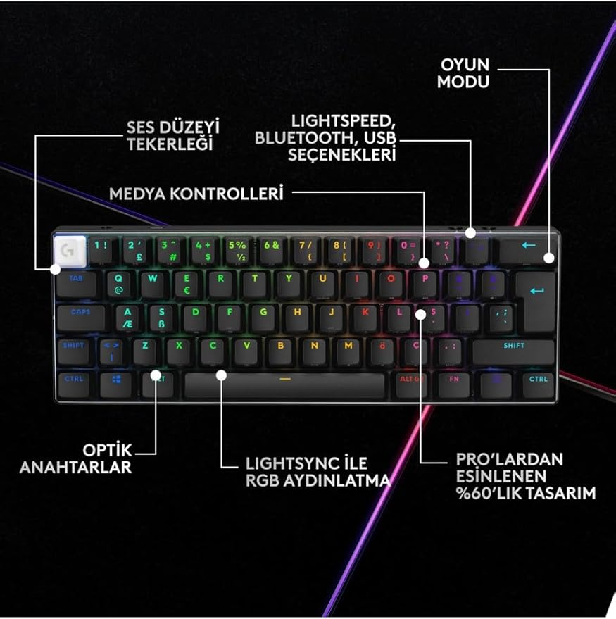 G Pro X 60 920-011930 RGB%60 TKL Tactile Switch Kablolu/Kablosuz Mekanik Oyuncu Klavyesi