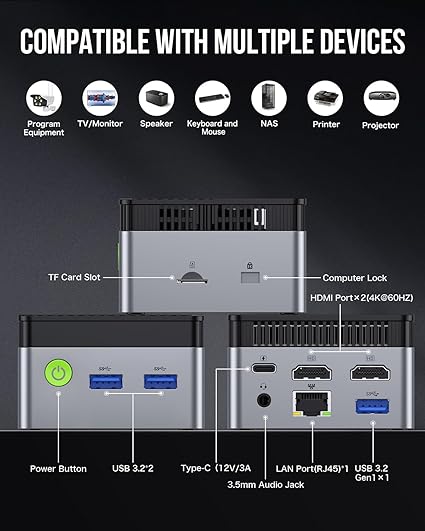 G5 Intel N97, 12GB DDR5, 256GB SSD, WiFi5, BT 4.2, Win11 PRO Mini PC