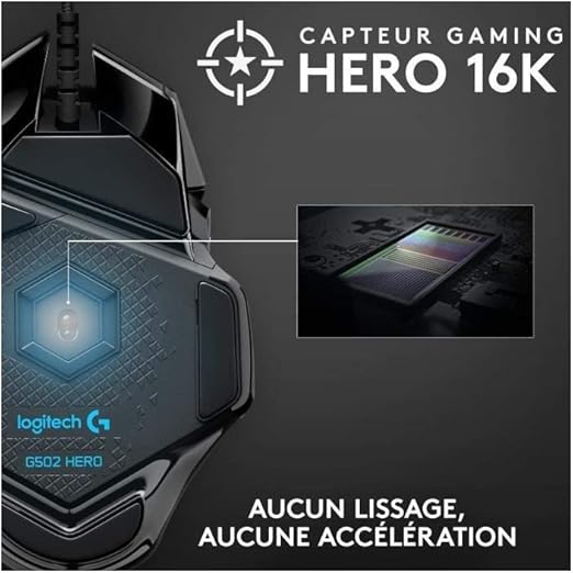 G502 HERO Kablolu Oyuncu Mouse, LIGHTSYNC teknolojisi, 25.600 DPI, 11 Programlanabilir Tuş, 121 gr Ağırlık, Siyah