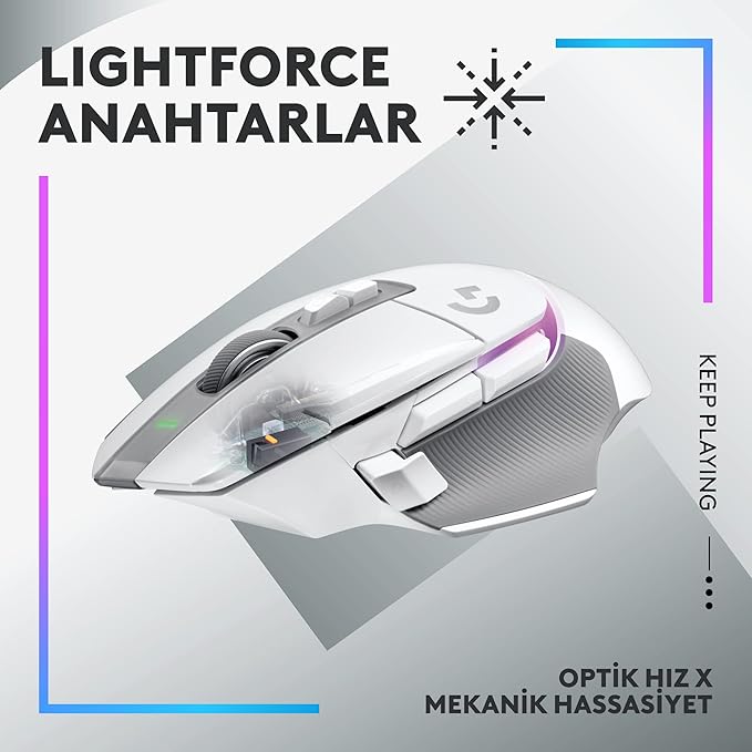 LIGHTSYNC RGB: Bu ışıklı mouse, açma/kapatma efektleri ve aktif oynatma algılama yoluyla pil optimizasyonu ile özelleştirilebilir ve oyun oynarken uyum sağlayan 8-LED aydınlatma ile donatılmıştır