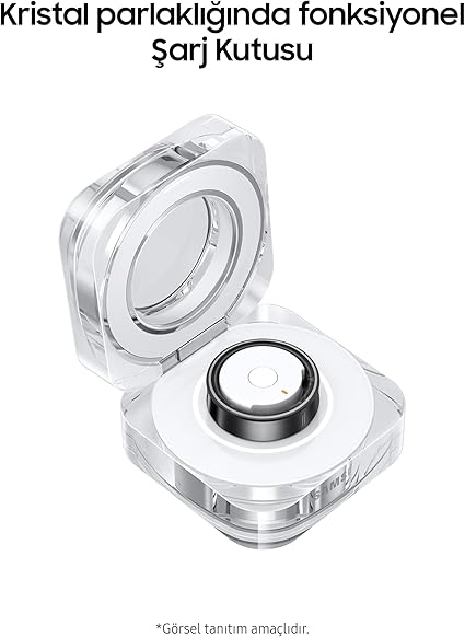 Kristal berraklığında, işlevsel Şarj Kutusu – Şarj Kutusu, çok amaçlı düğmenin etrafında pil şarj seviyesini gösteren bir ışığa sahiptir. Şarj Kutusunu kablosuz olarak da şarj edebilirsiniz. Galaxy Ring’i kılıfına yerleştirin ve kolay şarj için kablosuz bir şarj cihazının üzerine koyun.