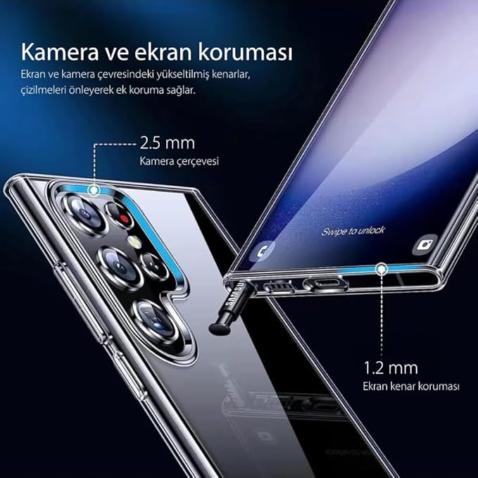 İnce, Hafif ve Ergonomik Yapı – Galaxy S23 Ultra’nın premium tasarımına tam uyum sağlayan ultra ince ve hafif yapı, telefonu ekstra ağırlaştırmadan rahat bir kullanım sunar. Kaymaz yüzey kaplaması, telefonun elinizden kaymasını önleyerek konforlu bir tutuş sağlar. Telefonunuzu tek elle bile güvenle kullanabilirsiniz.