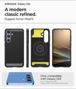 Galaxy S25 ile uyumlu Ekstra Dayanıklı Kılıf Rugged Armor Hava Kanalı Teknolojisi Askeri Sınıf Koruma MagFit özellikli Matte Black Çift Katman Kapak – ACS08998
