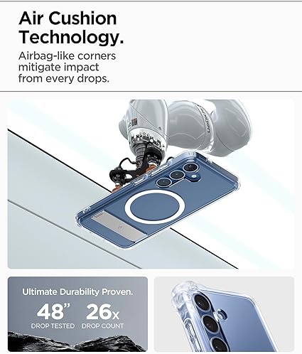 Galaxy S25 ince Kılıf Ultra Hybrid S Metal Stand’lı Sararma Karşıtı DuraClear™ Hava Kanalı Teknolojisi™ Askeri Sınıf Koruma MagFit özellikli Clear White Şeffaf Kapak – ACS09026