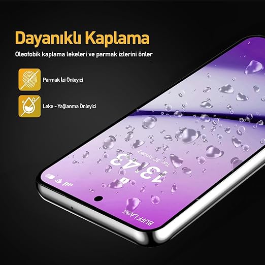 Dayanıklı Kaplama : Oleofobik kaplama ile parmak ve yüzünüzdeki yağın telefonla konuşurken ekran koruyucu üzerine bulaşmasını önlemeye yardımcı olur, böylece cihazınız harika görünür ve kolayca temizlenir.