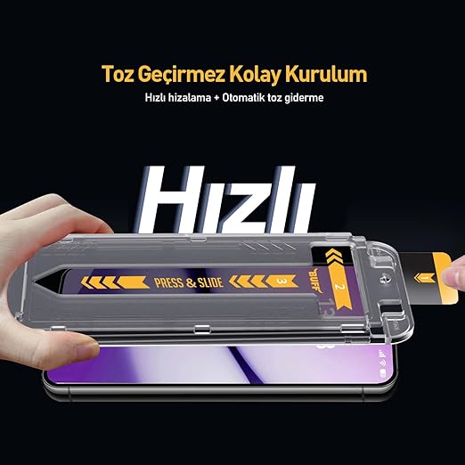 Toz Geçirmez Kolay Kurulum : Hızlı kurulum aparatına entegre toz alma etiketi ile birkaç saniyede kusursuz bir şekilde uygulama yapabilirsiniz.