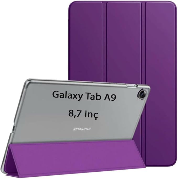 Galaxy Tab A9 8.7inç X110 X113 X115 X117 ile uyumlu Kılıf PU Deri Smart Standlı Case Mor