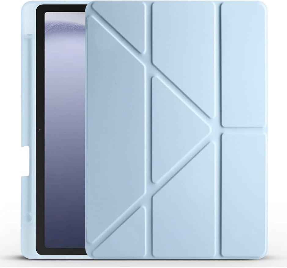 Galaxy Tab A9 Plus 11 İnç X210 Uyumlu Kalem Bölmeli Smart Cover Tablet Kılıf – Katlanabilir Standlı, Otomatik Uyku Modlu, Darbe Emici İnce Tasarım (Açık Mavi)