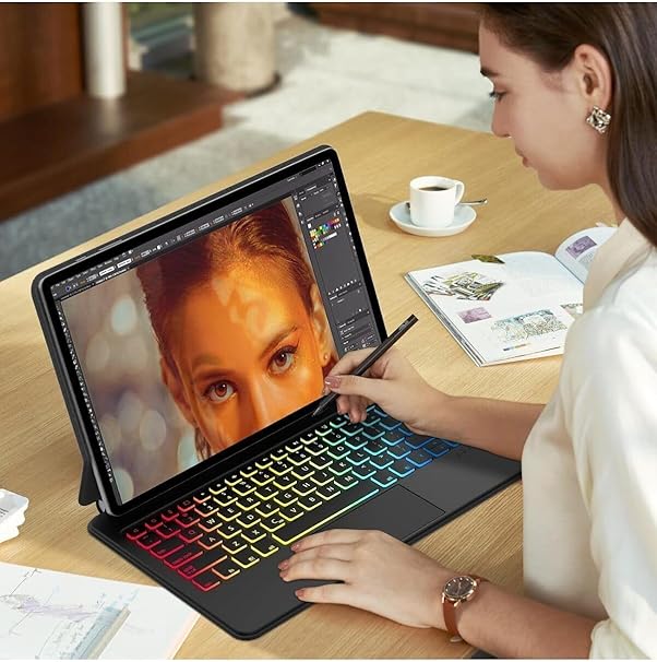 Galaxy Tab S10+ 12.4″ ile Uyumlu Magic Keyboard Touchpad Rgb Işıklı Klavyeli Kılıf