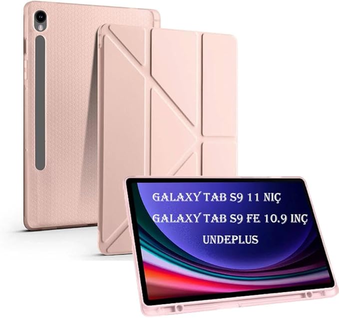 Galaxy Tab S10 Lite FE/S10/S9 FE/S9 ile uyumlu Kılıf Kalem Bölmeli Trifolding Case(12.4inç Değildir) Rose Gold