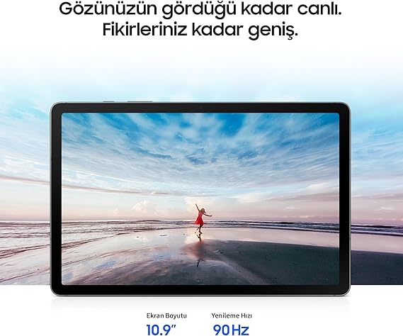 EKRAN: Hayal gücünüz kadar canlı. Fikirleriniz kadar geniş. Galaxy Tab S10 Lite, 90 Hz yenileme hızına sahip 10.9 inç geniş ekranıyla bir şeyler okurken, izlerken veya üretirken akıcı bir kaydırma ve kullanım deneyimi sunar. SGS sertifikalı mavi ışığı azaltmaya yardımcı ekranıyla uzun süreli kullanımda göz yorgunluğunu azaltmaya yardımcı olur. İster favori içeriklerinizi izleyin ister projelerinizi düzenleyin, ekranınız canlı ve net kalır.