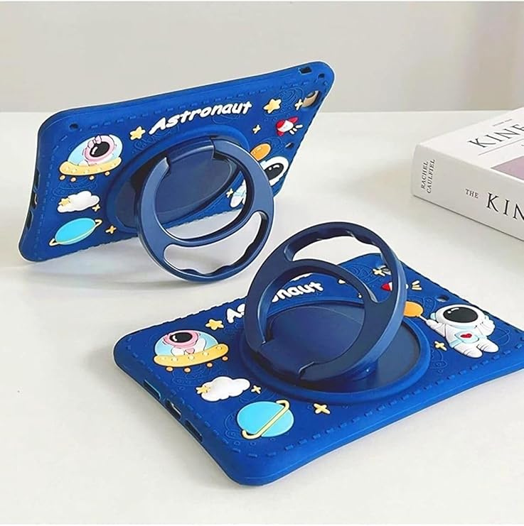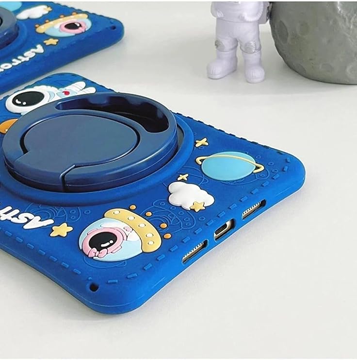 Galaxy Tab S6 Lite P610 P615 Uyumlu Standlı ve Boyun Askılı Astronot Figürlü Tablet Kılıfı Lacivert