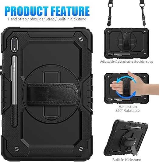 Galaxy Tab S9 FE Plus/S10 Plus/S9 Plus ile uyumlu Kılıf Defender Askılı Pars Case Fuji X610-16-810-18 X820 Siyah