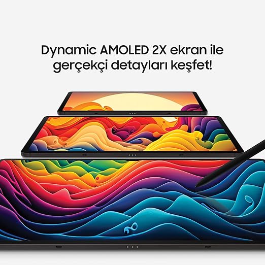 Dinamik AMOLED 2X Ekran: Galaxy Tab S9 serisinin üç boyutu da vizyonunuza canlı renkler ve gerçek siyahlarla1 hayat veren Dinamik AMOLED 2X ekrana sahiptir, HDR10+ ile geliştirilmiş görseller ve 120Hz’e varan yenileme hızıyla akıcı kaydırma özelliği