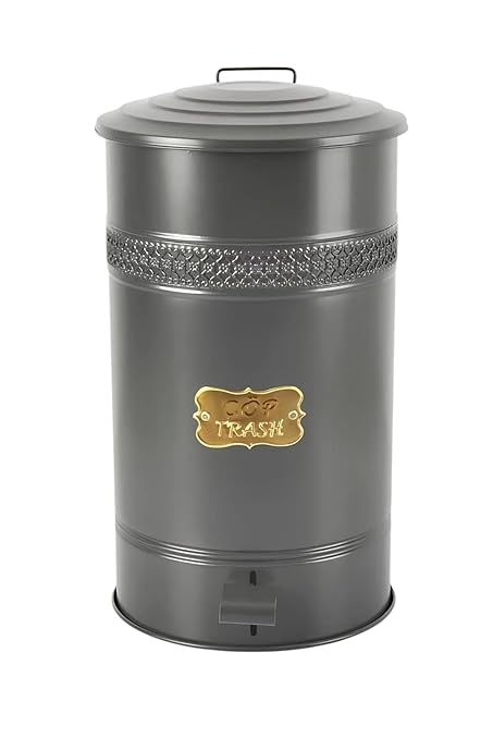 GALVANİZ METAL 30 LİTRE PEDALLI ÇÖP KOVASI (ANTRASİT)