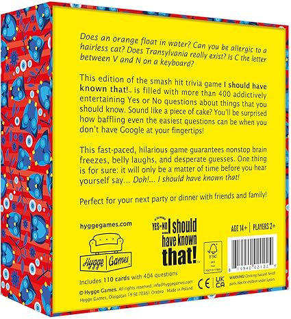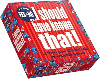 Büyük başarı yakalamış bilgi yarışması oyunu olan “I Should Have Known That”in bu sürümü, bilmeniz gereken şeyler hakkında 400’den fazla bağımlılık yaratan eğlenceli Evet-Hayır bilgi sorusu içeren 110 kart içerir.