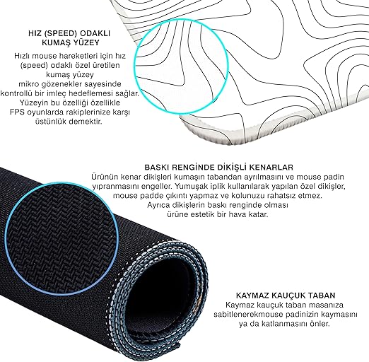 [Kaymaz Kauçuk Taban]: Masanızın yüzeyine tutunarak sabitlenir ve akıcı mouse hareketlerinizi korumak için kumaşın toplanmasını önler.