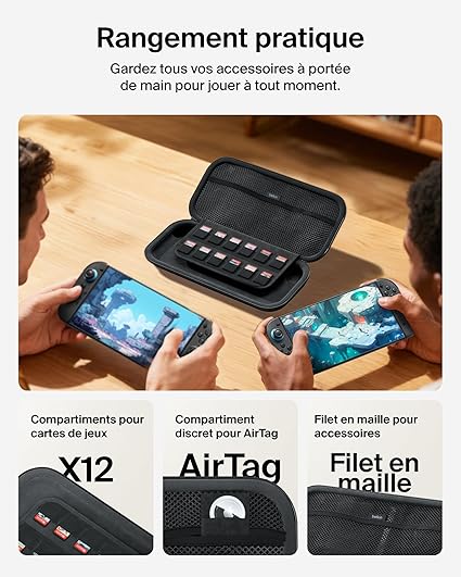 Okulda, seyahatte veya hareket halindeyken, özel bir slot sisteminde 10’a kadar oyun kartı düzenleyebilir ve gizli bir AirTag bölmesi kullanarak Nintendo Switch kasanızı takip edebilirsiniz