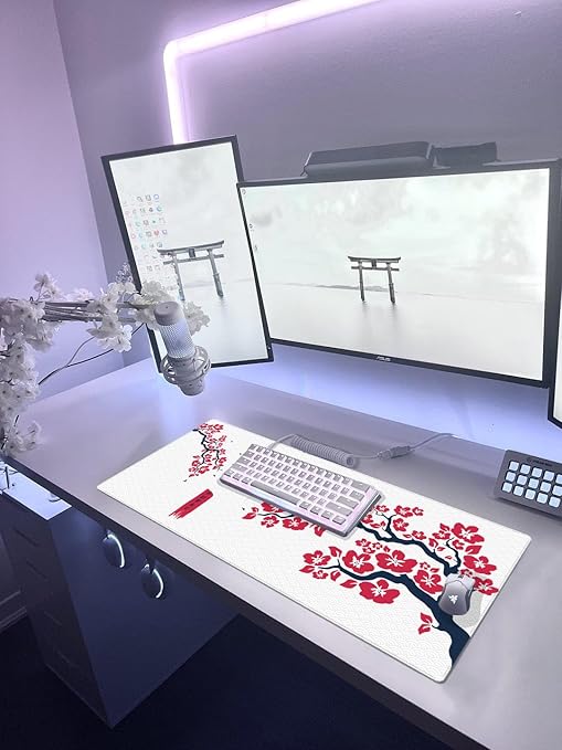 Gaming Sakura Mouse Pad 31×28, 70×30, 80×30, 90×40 Cherry Blossom Mouse Pad XXL Büyük Oyuncu Mouse Altlığı Kiraz Çiçeği Mousepad (Kırmızı-Beyaz, 70×30 cm 3mm kalınlık)