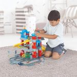 Çocukların üst kattan alt kata arabalarını sürdüğünde rol yapma eğilimlerine yararı vardır. Asansör özelliği mevcuttur