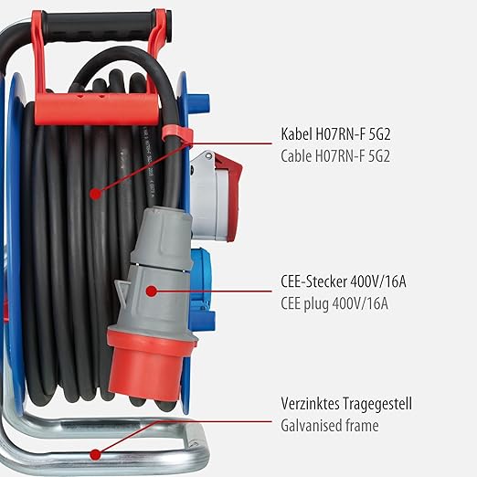 Teslimat kapsamı: 1 x Garant CEE 1 IP44 endüstriyel / şantiye kablo makarası, 30 m kablo uzunluğu, mavi renkli – Brennenstuhl marka en iyi kalite