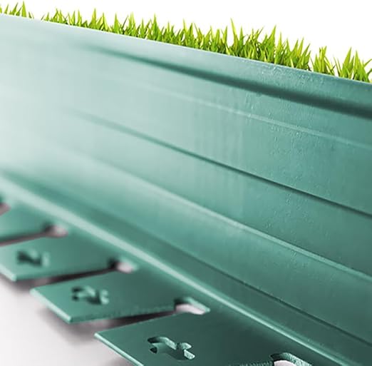 Hammadde : UV Dayanımlı PVC Renk : Yeşil Yükseklik : 7.5 cm Taban Genişliği : 6.5 cm Rulo Boyu : 2.5 Metre Sabitleme Kazığı : 2.5 metre için 2 adet 15 cm yüksekliğinde plastik sabitleme kazığı gönderilmektedir (Toplam 5 adet)