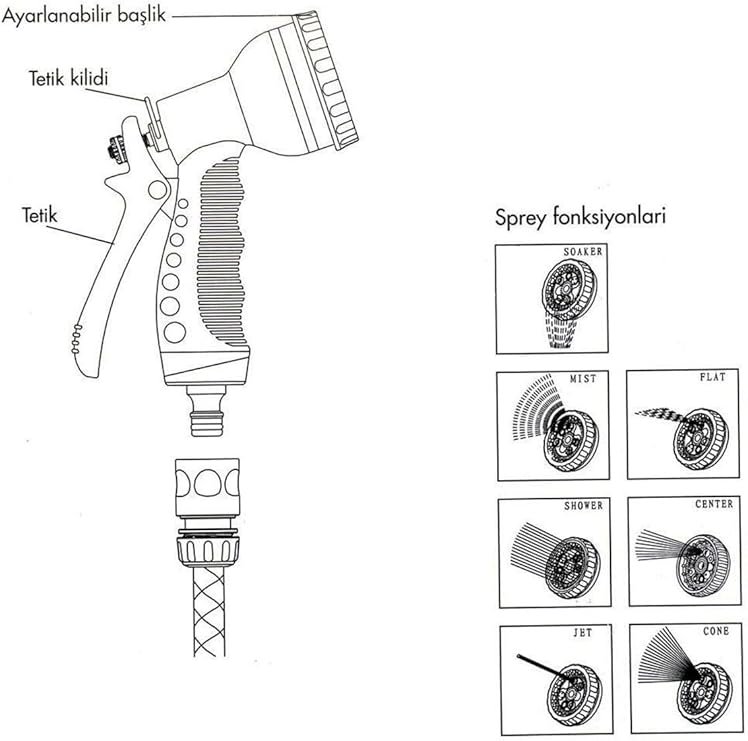 Garden Fıskiye Bahçe Sulama Tabancası Alüminyum 7 Fonksiyonlu Sulama TabancaUygunluk: 1 adet stokta