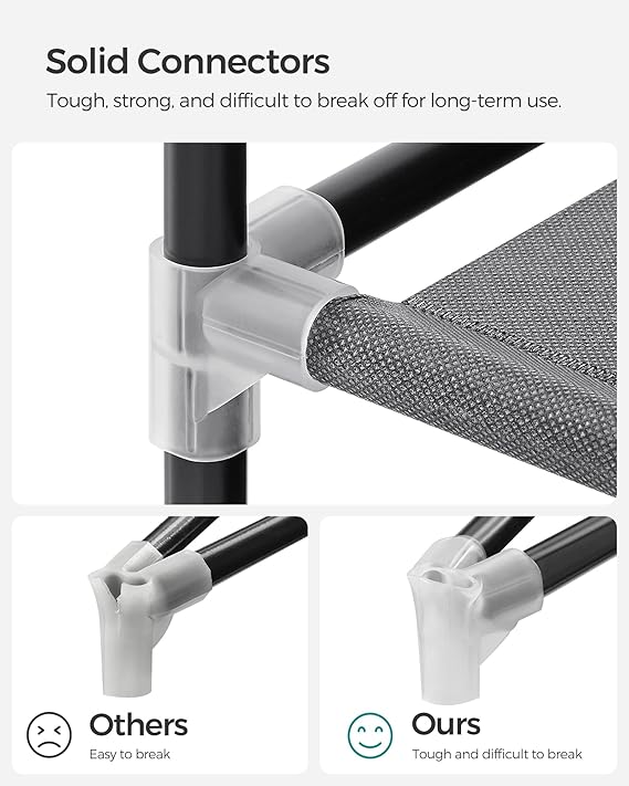[Mükemmel stabilite] Kumaş gardırop 16 mm çapında sağlam metal borulardan yapılmıştır, yüksek -kaliteli plastik konektörler ve 120gsm dokunmamış kumaş. Asma çubuğu 15 kg’a kadar ve her raf seviyesi 5 kg’a kadar yük taşıyabilir