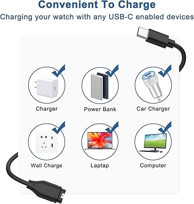 【Uyumluluk】: USB C şarj kablosu Garmin Forerunner 255 / Forerunner 955 / Forerunner 935 / Forerunner 945 / Forerunner 945 LTE / Forerunner 745 / Forerunner 45S / Forerunner 55 / Forerunner 245 ile uyumludur. / Forerunune. ner 245 Music / Forerunner 265 / Forerunner 965 / Forerunner 165 / Forerunner 158.