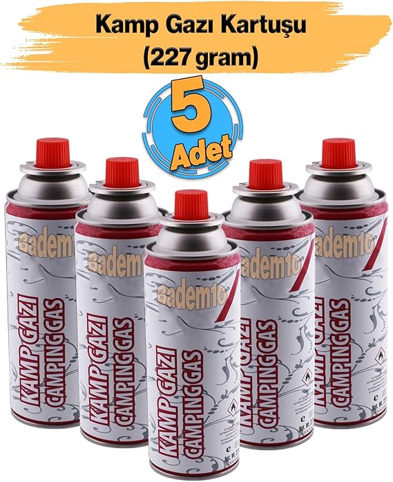 Gazı (5 Adet) Bütan Propan Tüpü Portatif Ocak Kartuşu Tek kullanımlık Pürmüz Yedeği 227 gr