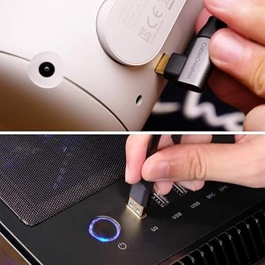 ✔❖ Açılı ve Hafif Tasarım: 90 derece dik açılı bağlantı kablosu, takması kolay ve oyun sırasında bağlantının kesilmesini etkili bir şekilde önler, bu da daha uzun bir kullanım ömrü için bükülmeyi azaltır ve engel olmaktan kaçınır; VR başlığına kolayca takılır ve hareketler sırasında bağlantının kesilmesini önler.