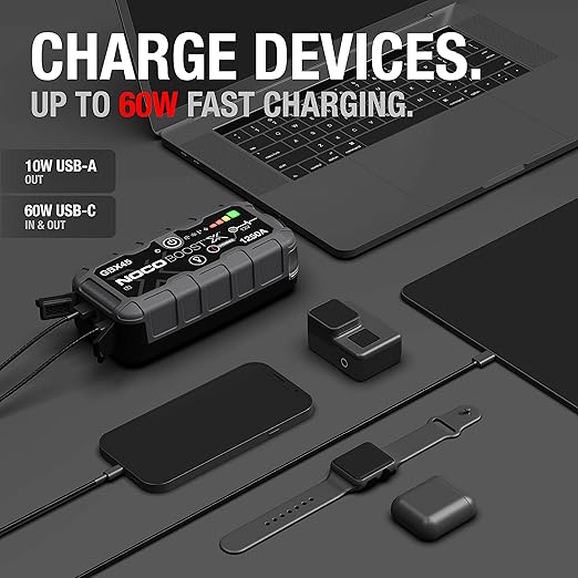 Başka bir otomobile veya ara kabloya gerek olmadan güçlü Li-ion aküsüyle 1250 Ampere kadar anlık başlangıç ile Otomobil, Motosiklet, ATV, Kamyon, Tekne, Traktör, Çim Biçme, Karavan ve daha birçok aracın motorunu anında çalıştırır,