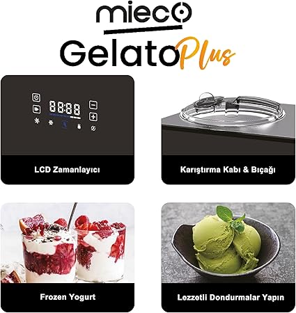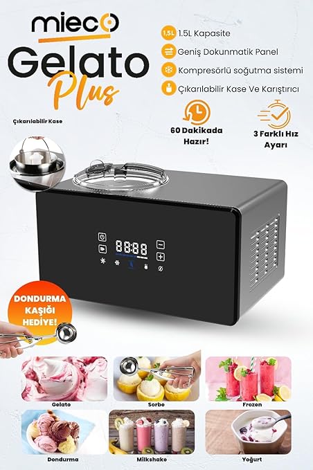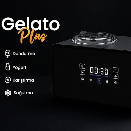 Gelato Plus Dondurma Makinesi – 3 Farklı Hız Ayarı, Kompresörlü Soğutma, Gelato, Sorbe, Frozen, Dondurma, Milkshake, Yoğurt- Paslanmaz Çelik Gövde – 1.5 Litre Kapasite