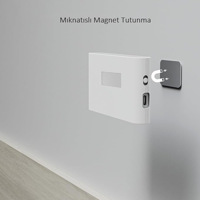 Mıknatıslı: Mıknatıslı tasarımı sayesinde kolayca istenilen yere monte edilebilir.