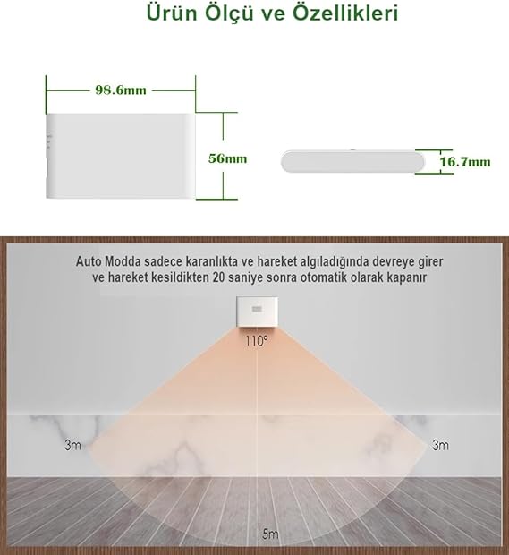 Geldi 2 Adet Sensörlü Aplik Gece Lambası Şarjlı Mıknatıslı Hero Led Beril Merdiven Koridor Aydınlatma (2)