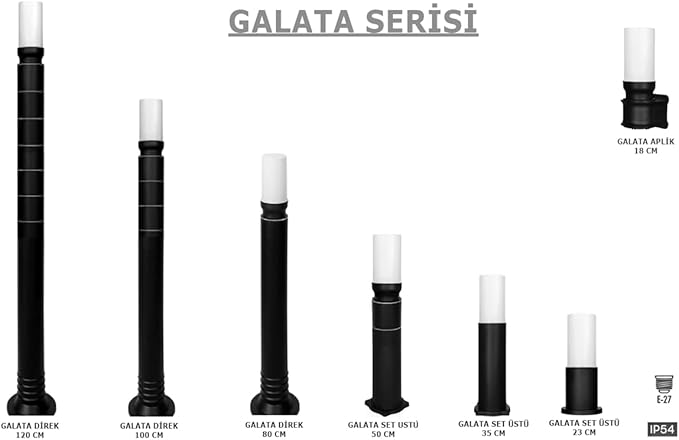 Geldi Bahçe Lambası Galata 50 Cm Set Üstü Direk Zita Bahçe Aydınlatması 220v E27 Ip54